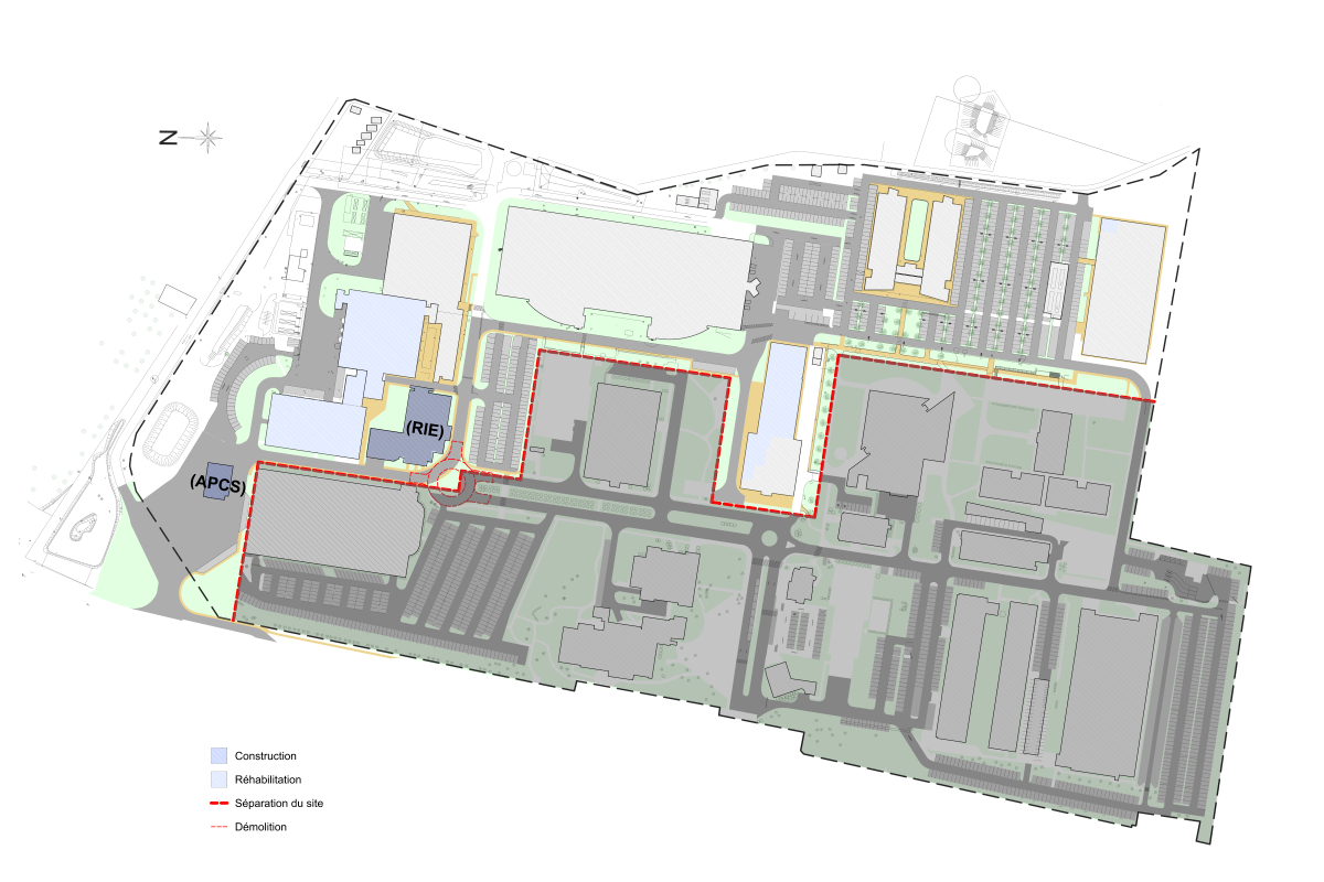 Data 4, propriétaire d'un terrain, a souhaité diviser un site en deux parties pour répondre à la demande de Nokia, son locataire, qui souhaitait y réduire son espace d'occupation. La séparation du site a impliqué une modification conséquente des réseaux et l'organisation spatiale du site a du être repensée. Une première phase de ce projet, sous la maîtrise d'ouvrage du propriétaire intègre la séparation physique du site (position de la clôture) mais surtout la réorganisation de la voirie, la création d'un nouveau bâtiment d'accueil et la création d'un nouveau restaurant d'entreprise. La seconde phase, en chevauchement de la première, sous la maîtrise d'ouvrage du locataire, concerne les travaux directement liés à l'exploitation, mais également le phasage qui permettra les emménagements d'équipements technologiques spécifiques.